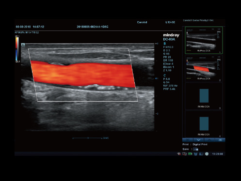 Es ist ein Durchbruch und eine wichtige Innovation, den Farb-Doppler-Fluss in einer 3D-Visualisierung darzustellen. Glazing Flow liefert intuitiv verständliche, einfache Visualisierung von Durchblutungsstrukturen, insbesondere bei sehr dünnen Gefäßen. Zudem ist es nützlich bei der Bestimmung der Grenzen sich kreuzender Gefäße.