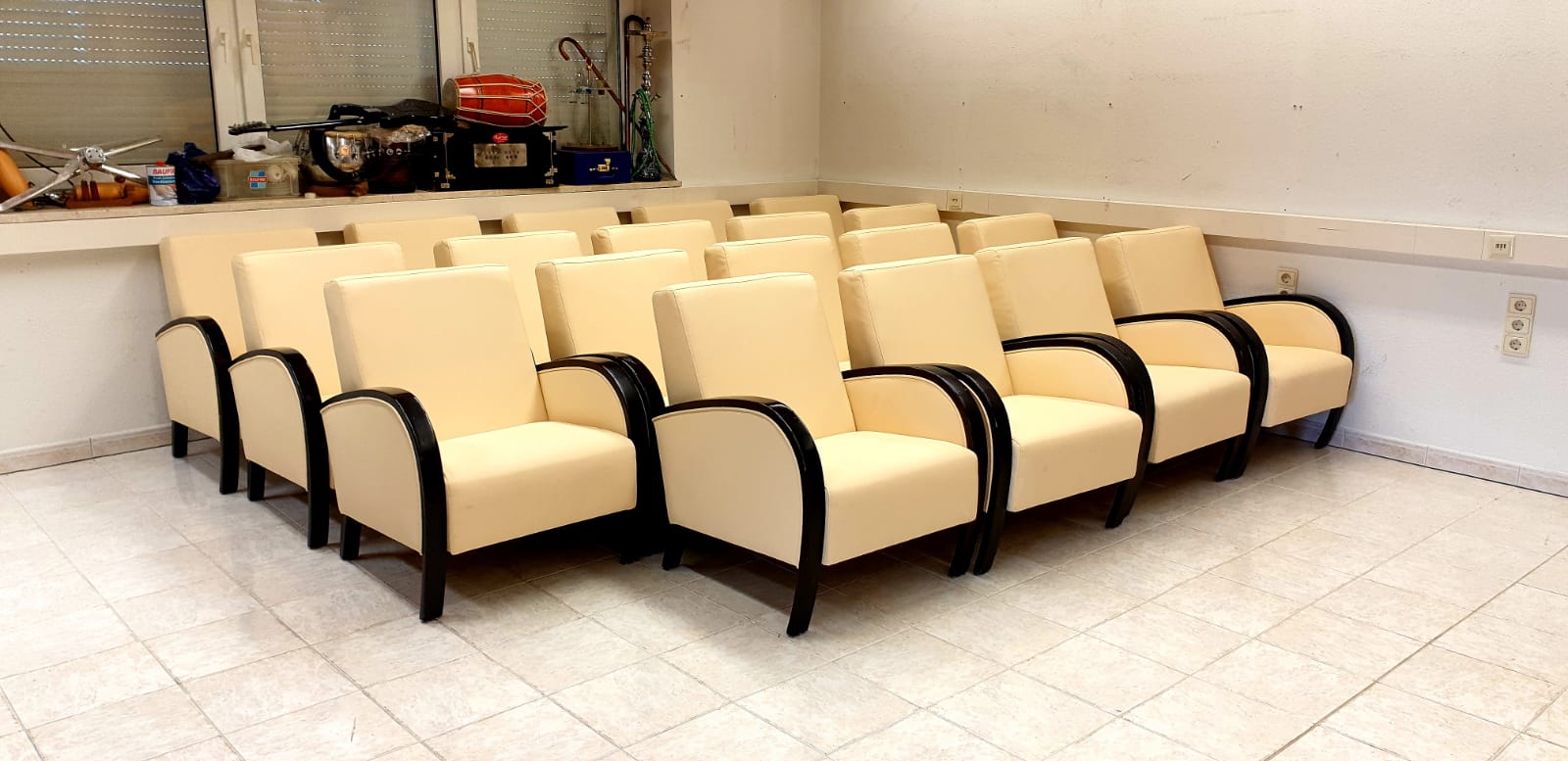 Anmerkungen....Hierbei handelt es sich um ein gebrauchte Sessel Einheit (ehemals Bundeswehr Bestand) ECHTLEDER. Dieser Einheit besteht aus 16 Sessel, 4 Beitische. Wie auch bei den anderen Angeboten nur KOMPLETVERKAUF. Besichtigung nach Absprache in Hamburg.