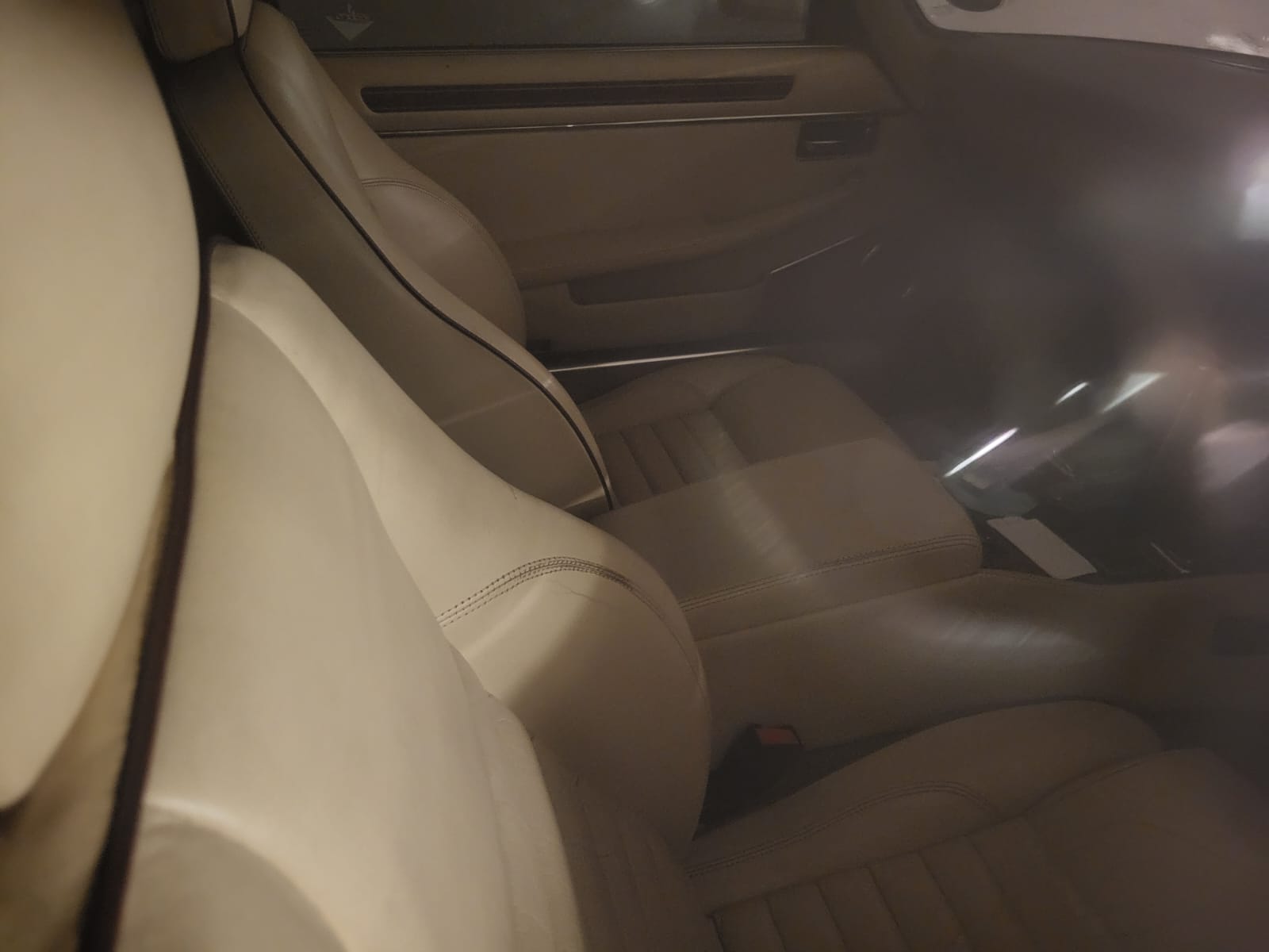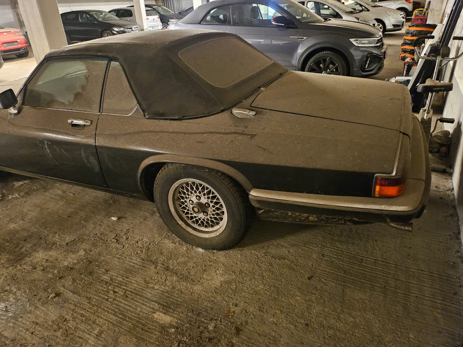 Mehrere Fahrzeuge wirken wie Youngtimer oder Oldtimer, darunter sportliche Modelle und elegante Klassiker. Die Karosserien sind überwiegend vollständig, jedoch teilweise verschmutzt oder matt, was auf Lagerung statt aktiven Gebrauch schließen lässt. Einige Detailaufnahmen zeigen Innenräume mit Ledersitzen, Armaturenbretter mit klassischen Rundinstrumenten sowie Lenkräder im zeittypischen Design.