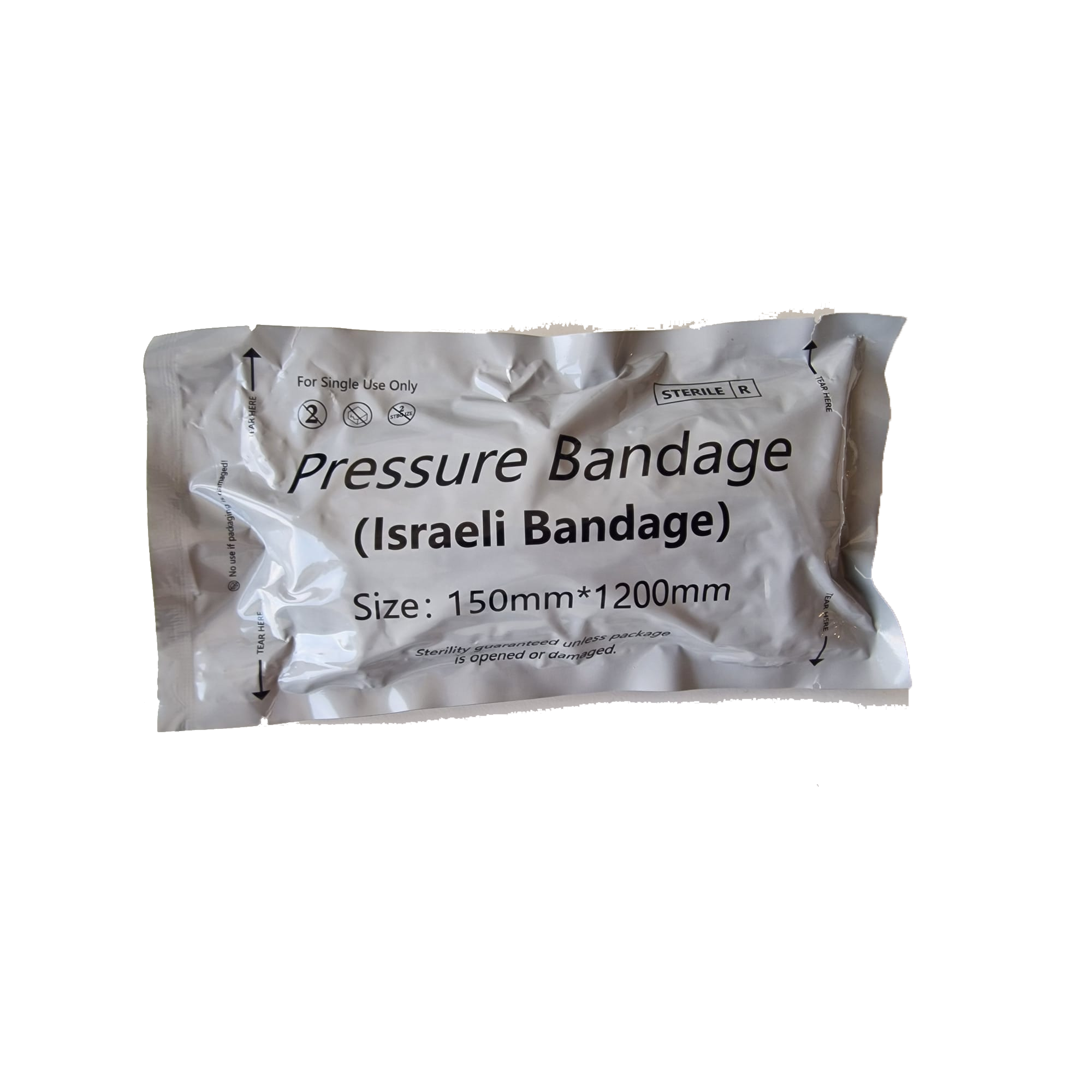 Diese Bandage stammt aus dem Bereich TCCC/TECC und ist für die taktische Traumaversorgung konzipiert. Der breite Emergency- bzw. Israeli-Verband kombiniert mehrere Funktionen in einem einzigen Druckverband und verfügt über eine stark saugfähige Wundauflage für stark blutende Verletzungen. Er eignet sich zur Versorgung schwerer Wunden an Armen und Beinen sowie im Kopf- und Halsbereich.