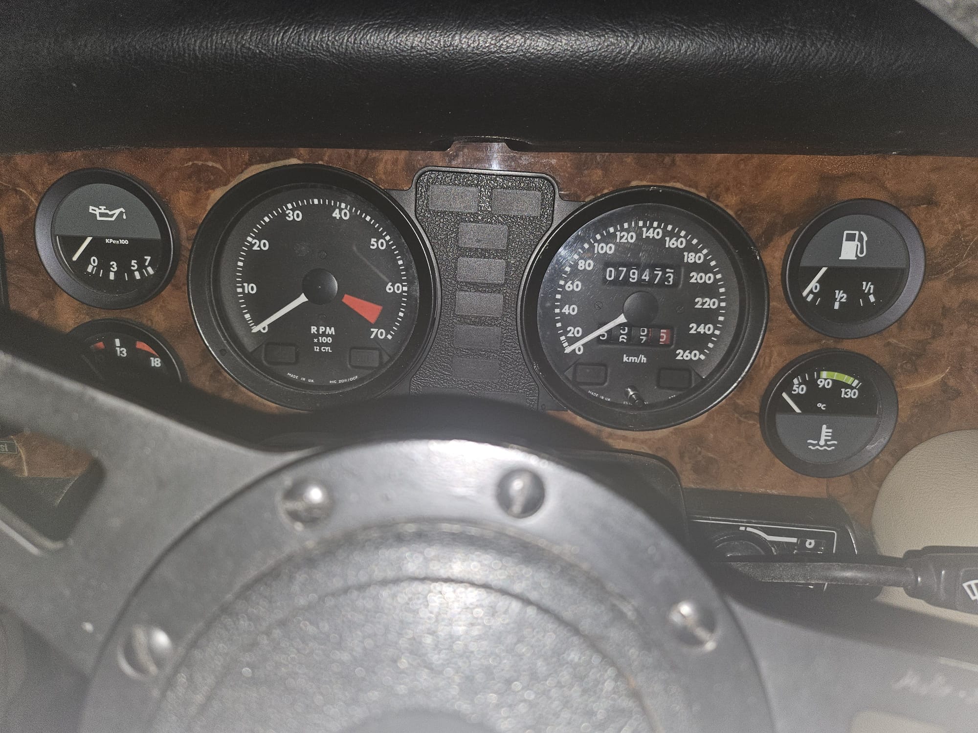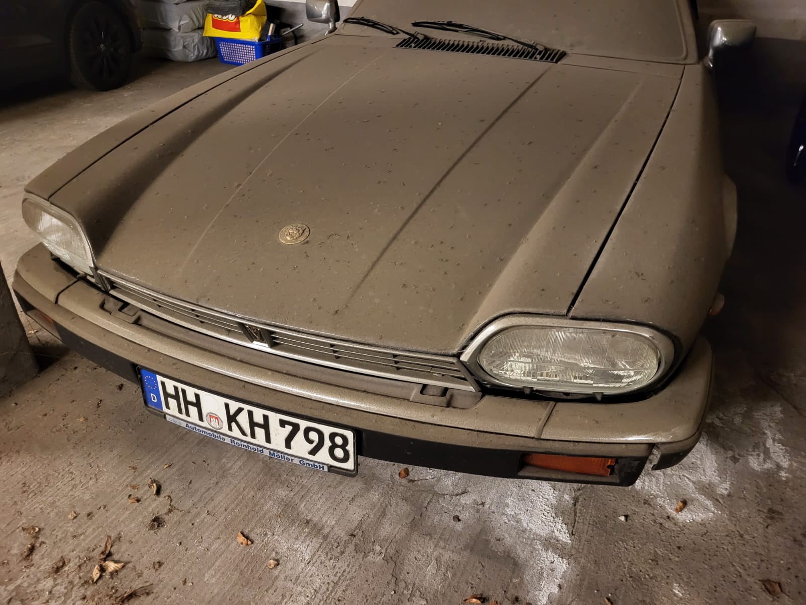 Mehrere Fahrzeuge wirken wie Youngtimer oder Oldtimer, darunter sportliche Modelle und elegante Klassiker. Die Karosserien sind überwiegend vollständig, jedoch teilweise verschmutzt oder matt, was auf Lagerung statt aktiven Gebrauch schließen lässt. Einige Detailaufnahmen zeigen Innenräume mit Ledersitzen, Armaturenbretter mit klassischen Rundinstrumenten sowie Lenkräder im zeittypischen Design.